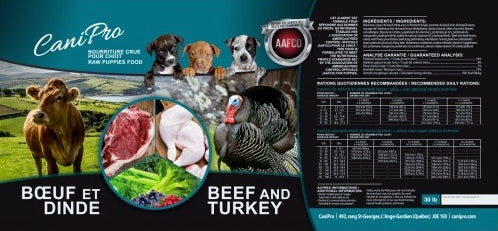 Liste d’ingrédients : Bœuf avec cœurs de boeuf, Dinde avec os finement broyés, Poumon de bœuf, Reins de bœuf, Hareng sauvage de l’atlantique, Foie de bœuf, Levure déshydratée, Cresson, Brocoli, Céleri, Chou frisé, Bleuets, Canneberges, Chlorure de choline, Supplément de vitamine E, Protéinate de zinc, Protéinate de manganèse, Protéinate de fer, Iodate de calcium, Vitamine D3 (Cholécalciférol).